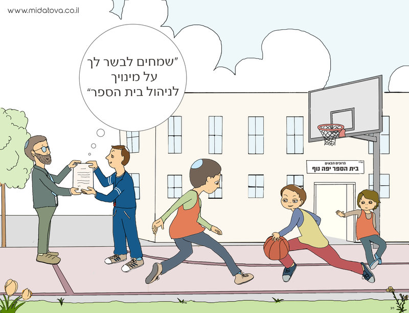 "מר כהן, שלום. אני שמח לבשר לך שיש לנו מועמד לניהול בית הספר – המורה לחינוך גופני, יוסי."